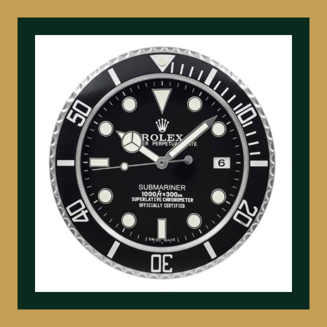 The Submariner Black Dial Wall Clock is a bold tribute to timeless elegance.